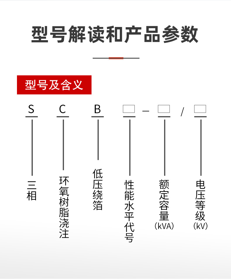 在使用SCBH19非晶合金干式變壓器時(shí),還需要注意其一些關(guān)鍵參數(shù)。首先是額定功率。根據(jù)實(shí)際需求,選擇合適的額定功率,以確保變壓器能夠正常工作,不會(huì)發(fā)生過載或欠載的情況。其次是額定電壓。根據(jù)電網(wǎng)的電壓要求,選擇相應(yīng)的額定電壓,以保證變壓器能夠穩(wěn)定地將電能傳輸?shù)侥繕?biāo)設(shè)備,SCBH19非晶合金干式變壓器的具體參數(shù)如下