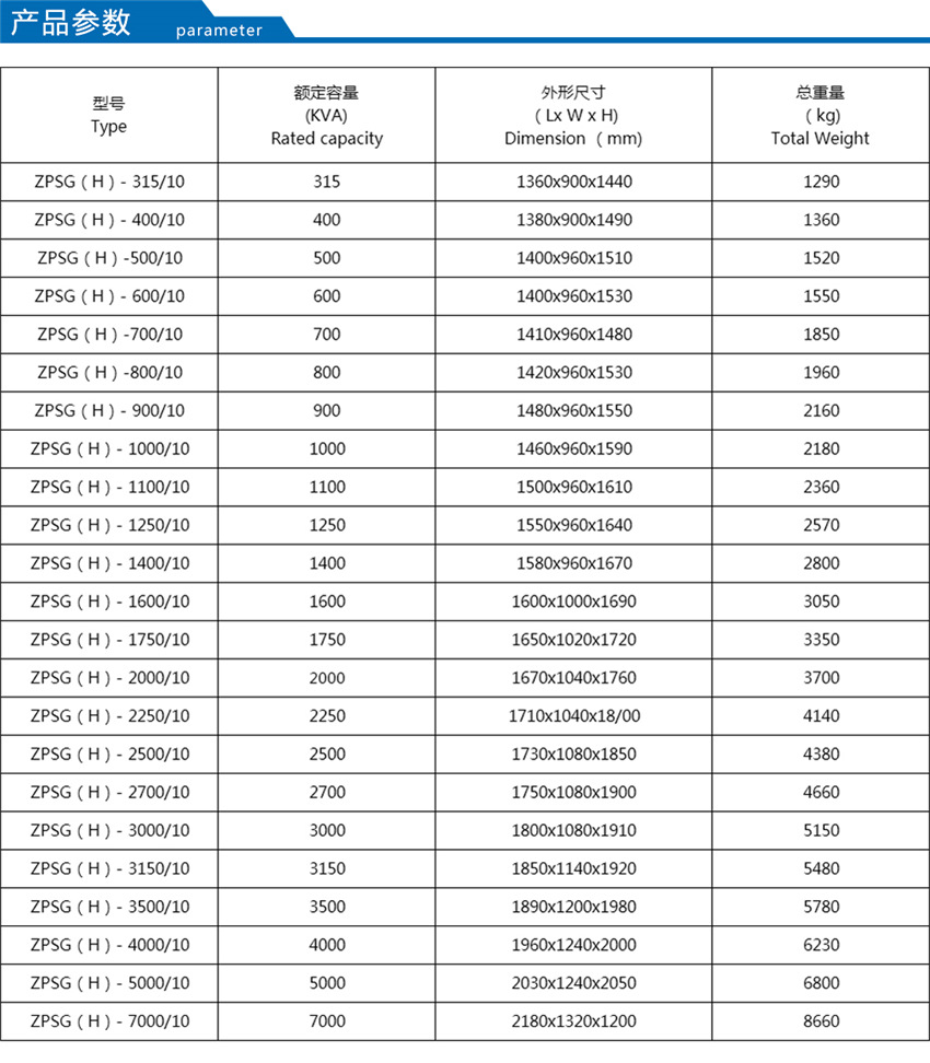 【額定容量】:315-7000KVA